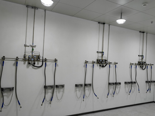 1.氣瓶間內壓力值調接控制面板與工作內的氣路用戶相互之間挑選SS316LBA管實行對接,管路內表明滑潤度為Ra<0.4umBA級管路。